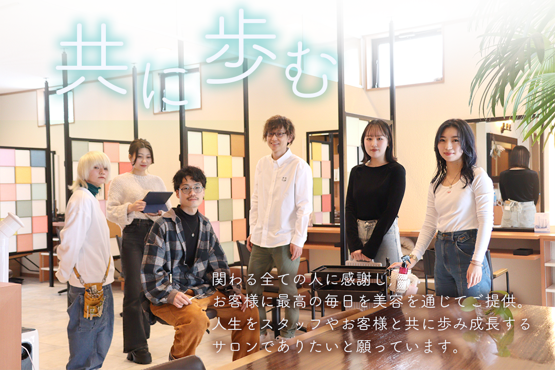 私たちは、お客様に寄り添い、心地よく通っていただけるサロンづくりを目指しています。かわいくてアットホームな店内で、ゆったりとした時間をお過ごしください。プロフェッショナルな技術で、ヘアデザインやカラーはもちろん、髪そのものを美しく保つケアも徹底。エイジングケアや個室でのリラックス時間もご提供しています。お客様一人ひとりに合ったオーダーメイドの施術で、心身ともに豊かになれる瞬間をお届けします。